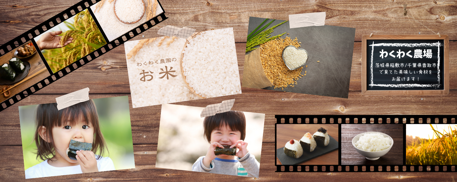 私たちわくわく農場は、稲敷市の豊かな自然と清らかな水に恵まれた土地で、 お米を丁寧に育てています。